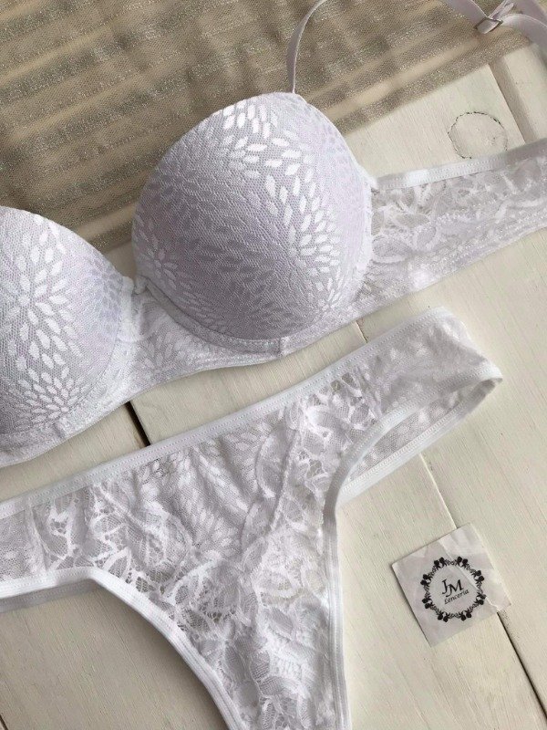 Conjunto de microfibra fantasía. Corpiño push up soft y colaless