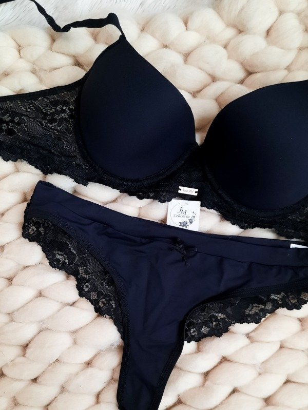 Conjunto de puntilla y microfibra, corpiño taza soft sin push up y colaless.