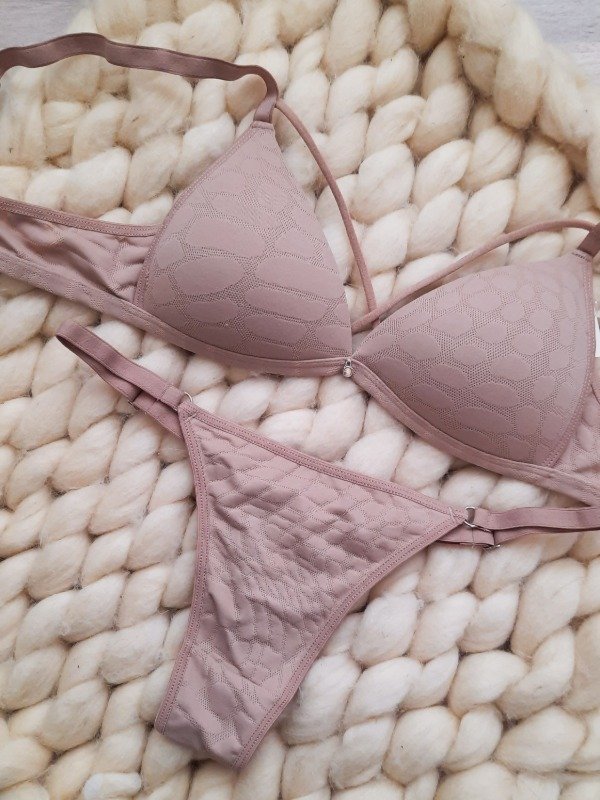Conjunto triángulo soft de microfibra labrda con detalle de tiras en escote + colaless