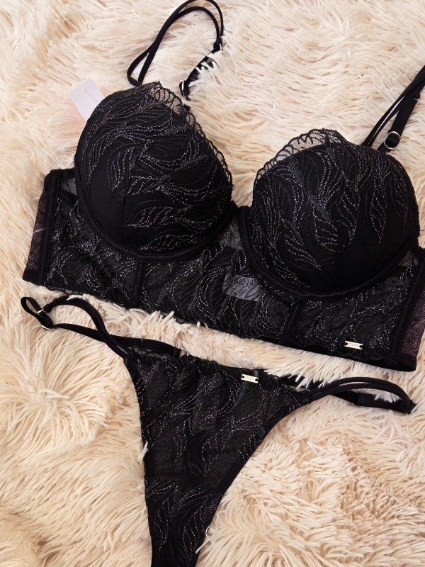 Conjunto de tul bordado. Corpiño bustier taza soft y colaless regulable.