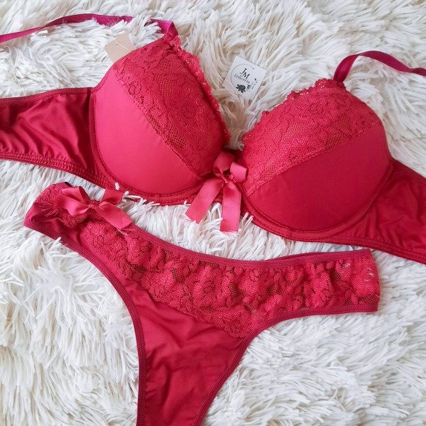 Conjunto de microfibra y puntilla. Corpiño premoldeado sin push up y colaless.