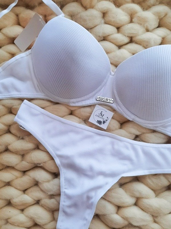 Conjunto de morley. Corpiño push up soft con dije personalizado "Sigry" y colaless